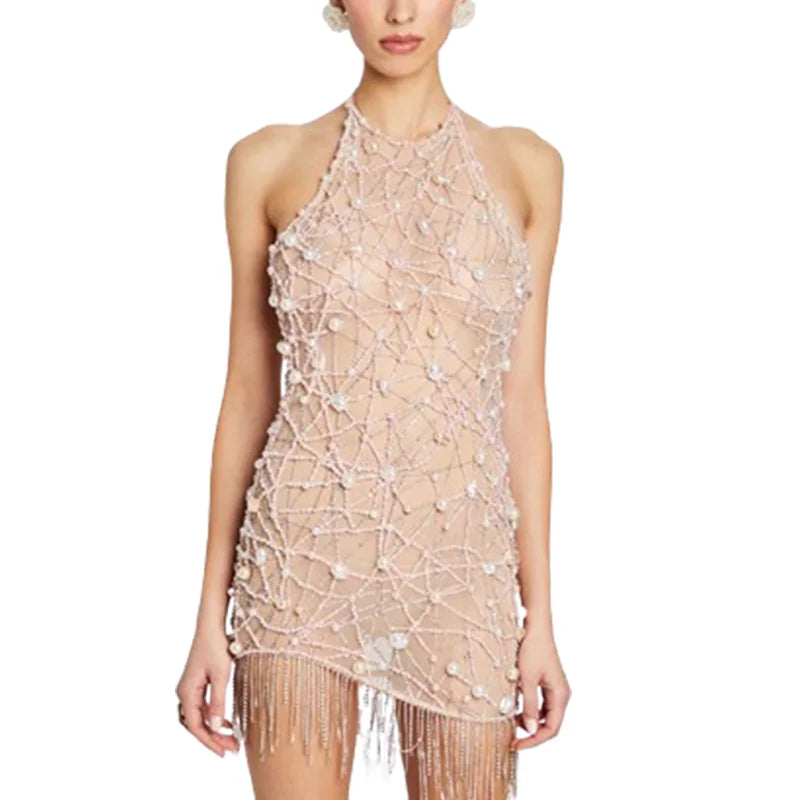 Step into the spotlight with our stunning Custom Strapless High Neck Embellished Dress. This fringed, slim, preppy evening dress is the ultimate choice for those special occasions, whether it's a glamorous ball, a trendy club night, or any event where you want to make a lasting impression.