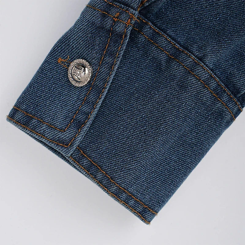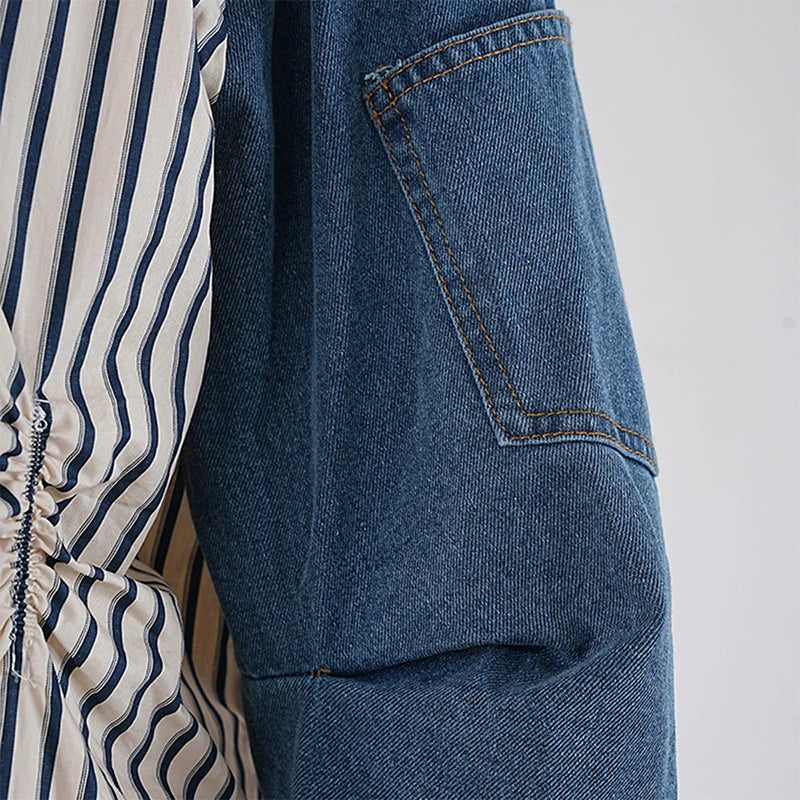 - Product Name: Clashing Denim Zipper Loose Striped Shirt